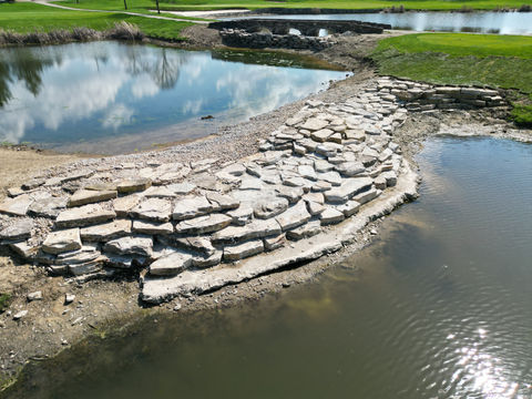 Oheil Site Solutions was tasked with designing and constructing new stone waterfalls that would connect existing ponds along CCN's golf course. There are a total of five waterfalls that we built as seen in the photos below!
