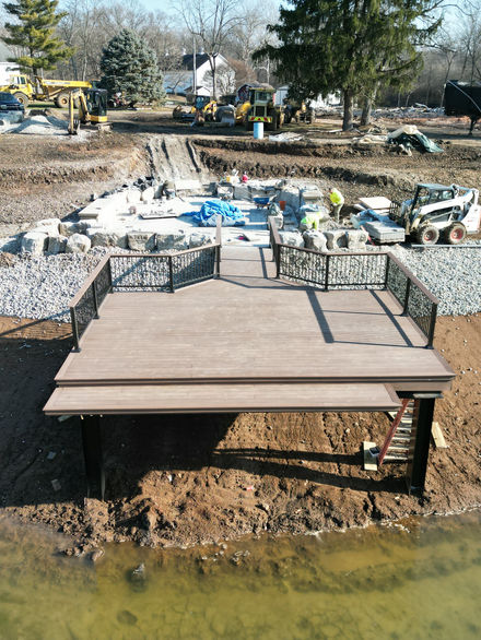 Oheil Site Solutions has reconstructed and developed several ponds. Pictured below is a pond we reconstructed to increase its size and added on other features such as fountains, fishing piers, landscaping and rock lining.